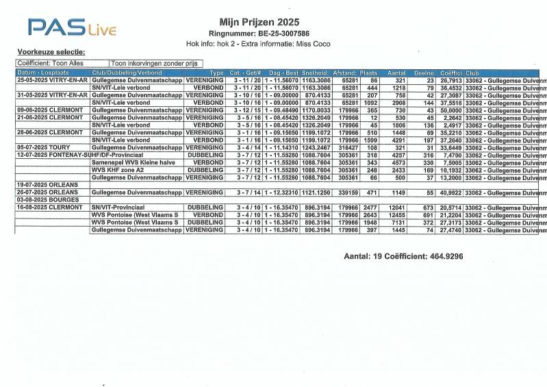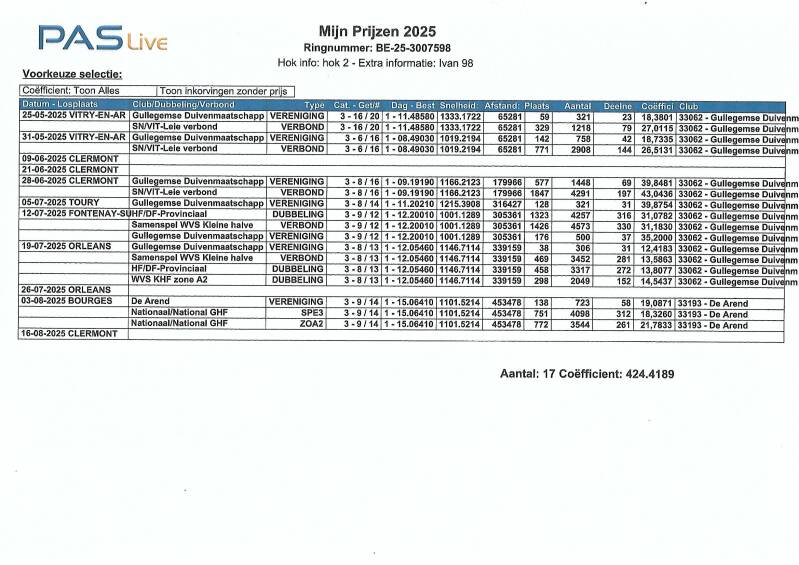 Duivin : Montoirelijn (1e prijs vlieger hier geweest) soort Andy Seynaeve x duivin Willy Vanhoutte/ Willy Desmedt